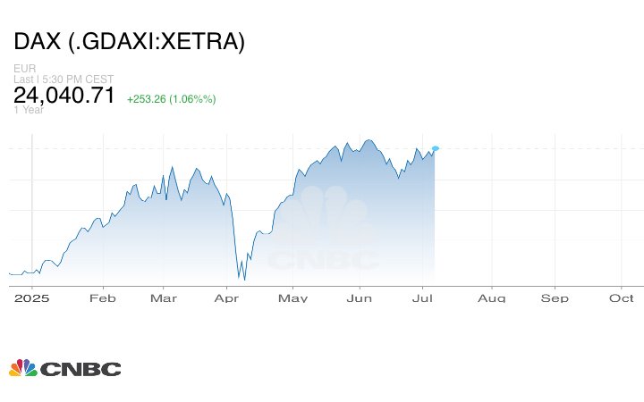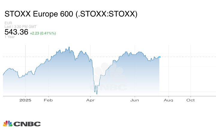 ارتفعت أسواق الأسهم الأوروبية في ختام تعاملات الاثنين 7 يوليو/ حزيران، في انتظار العديد من إعلانات الصفقات التجارية من البيت الأبيض خلال الأيام المقبلة.