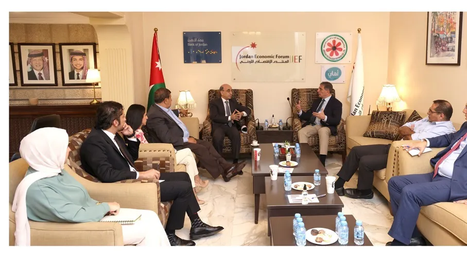 عقد المنتدى الاقتصادي الأردني جلسة حوارية ضمن “الصالون الاقتصادي” بعنوان “البطالة ورؤية التحديث الاقتصادي”، بمشاركة مدير عام المركز الأردني لحقوق العمل – بيت العمال حمادة أبو نجمة، وبحضور رئيس المنتدى مازن الحمود وعدد من أعضاء مجلس إدارة المنتدى والهيئة العامة.