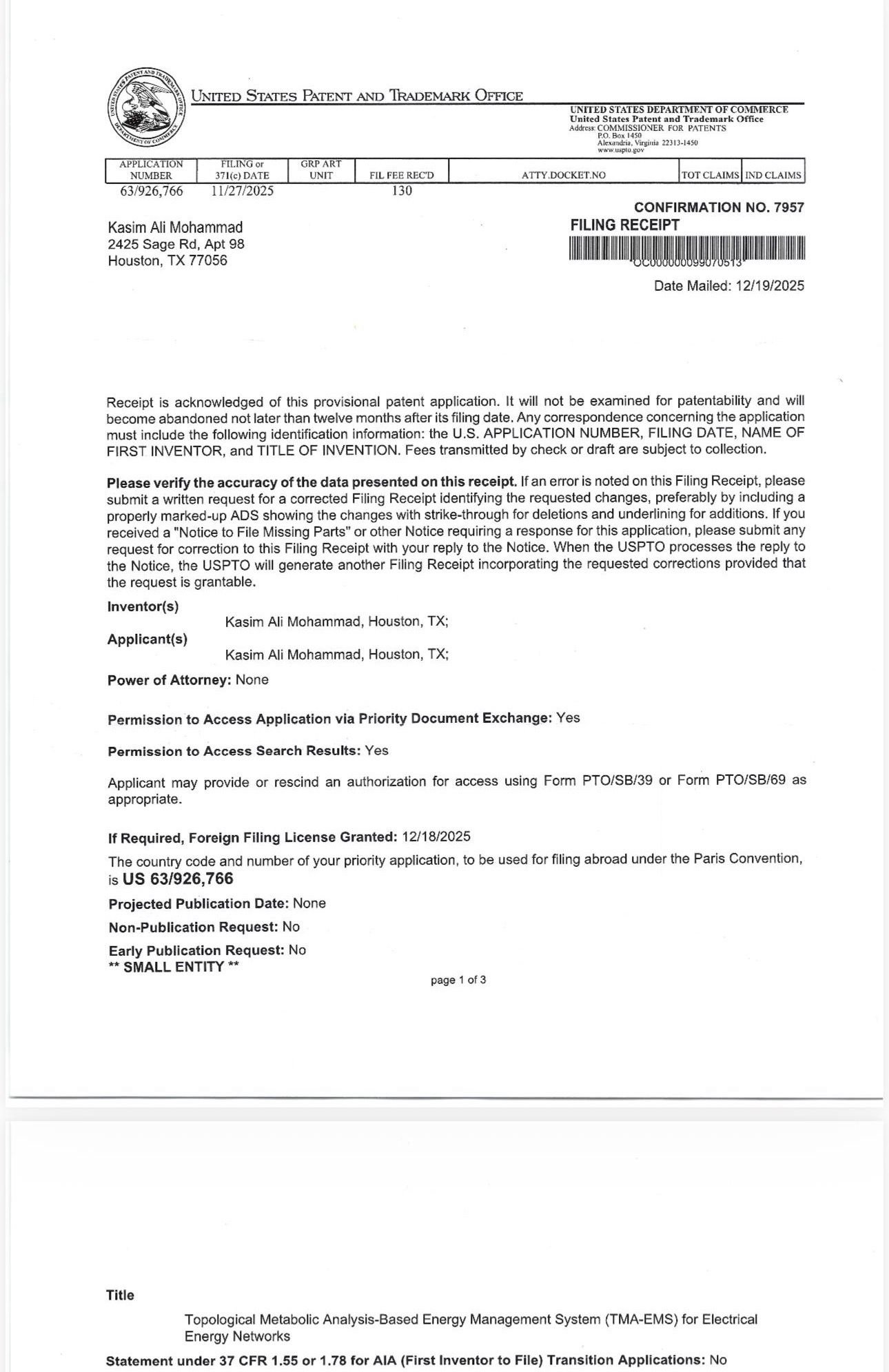 وتمثل الاختراع بـ “نظام إدارة الطاقة القائم على التحليل الأيضي الطوبولوجي باستخدام الذكاء الاصطناعي (TMA-EMS) لشبكات الطاقة الكهربائية”، وهو نظام مبتكر يهدف إلى تطوير أساليب إدارة وتحسين كفاءة شبكات الطاقة الكهربائية، اعتمادا على نماذج تحليل متقدمة وتقنيات الذكاء الاصطناعي.