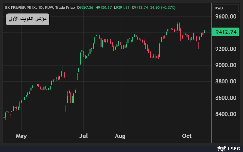ارتفع مؤشر الكويت الأول بنسبة 0.4% في يوم الخميس بدعم من ارتفاع سهمي عقارات الكويت وإيفا للفنادق بنسبة 1.5% و1.9% على التوالي.