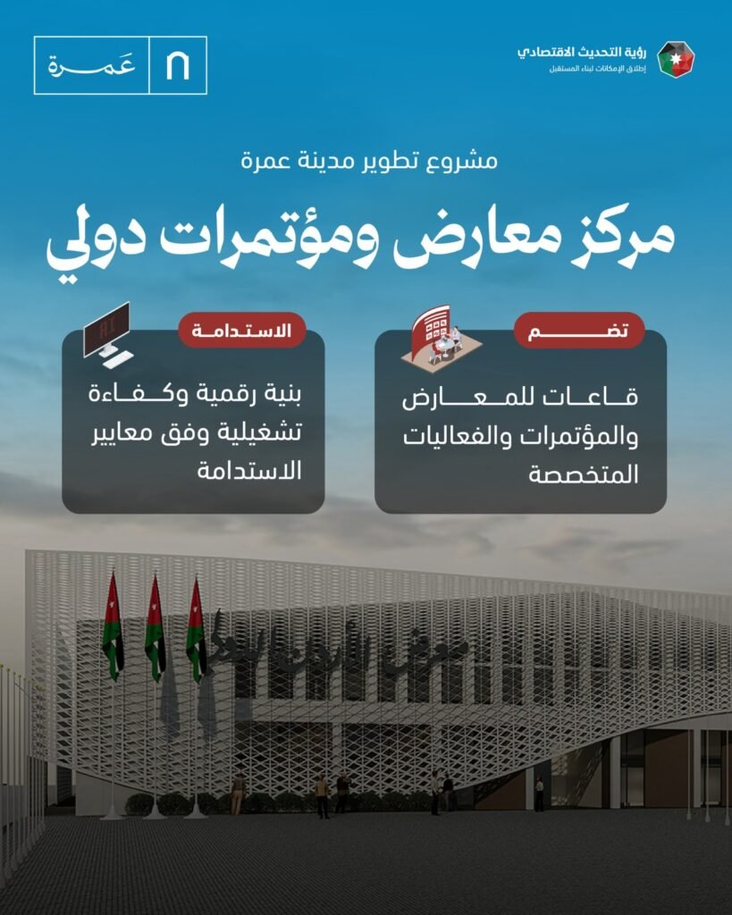 اسواق جو – كشفت الحكومة السبت، عن تفاصيل مشروع “مدينة عمرة” الذي يتضمن مراحل عدة حيث تتضمن المرحلة الأولى من المشروع تخصيص أراضٍ لإقامة مشاريع استثماريَّة إنتاجيَّة تشمل مركزاً دوليَّاً للمعارض والمؤتمرات سينجز عام 2027،