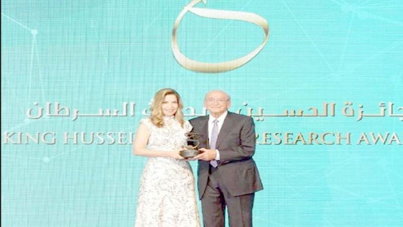 اسواق جو – كرمت سمو الأميرة غيداء طلال، رئيسة هيئة أمناء مؤسسة ومركز الحسين للسرطان، البنك العربي ممثلا برئيس مجلس إدارته صبيح المصري، تقديرا للرعاية البلاتينية التي قدمها البنك لجائزة الحسين لأبحاث السرطان لعام 2025، ولعطائهم المستمر لرسالة مؤسسة ومركز الحسين للسرطان.