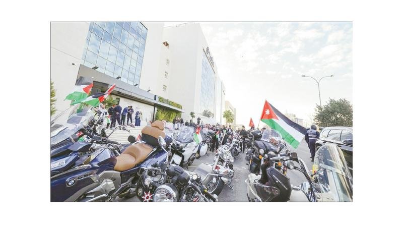 وشارك في المسيرة، التي انطلقت صباح أمس الجمعة، مئات الدراجات النارية في موكب احتفالي مهيب، تجسدت فيه مشاعر الولاء والفخر والاعتزاز بجلالة الملك، وجابت المسيرة عدداً من شوارع العاصمة عمّان وصولاً إلى الساحة الهاشمية في منطقة وسط البلد، حيث استُكملت الاحتفالات بمعزوفات لموسيقات الأمن العام، قدّمت خلالها أجمل الألحان الوطنية المميزة التي تغنّت بعيد ميلاد قائد الوطن الميمون.