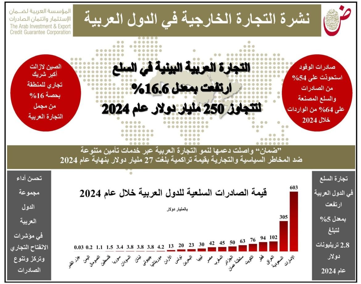 “ضمان الاستثمار”: 3.6 تريليون دولار تجارة عربية بينية في 2024