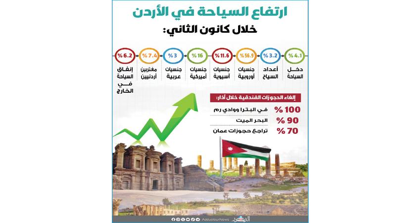 هذه المؤشرات تعكس انتقالاً تدريجياً نحو سلوك استهلاكي أكثر حذراً، مع اعتماد أكبر على السوق المحلي، في وقت يواصل فيه المغتربون لعب دور محوري في دعم الطلب، وإن بوتيرة وأنماط إنفاق مختلفة، ما يعيد رسم خريطة الحركة الشرائية في المملكة. وأظهرت البيانات الصادرة عن البنك المركزي الأردني ارتفاع الدخل السياحي خلال شهر كانون الثاني من عام 2026 بنسبة 4.1  ٪ ليبلغ 708.5 مليون دولار، مقارنة مع 680.5 مليون دولار خلال الشهر نفسه من العام الماضي، ويعزى ذلك إلى ارتفاع أعداد السياح بنسبة 3.2  ٪. وبحسب البيانات، سجل الدخل السياحي خلال الشهر ذاته ارتفاعاً من الجنسيات الأوروبية بنسبة 56.9  ٪، والآسيوية 11.6  ٪، والأميركية 16  ٪، والعرب 3  ٪، فيما تراجع الدخل السياحي المتأتي من الجنسيات الأخرى بنسبة 2  ٪، وكذلك من الأردنيين المغتربين بنسبة 3  ٪.